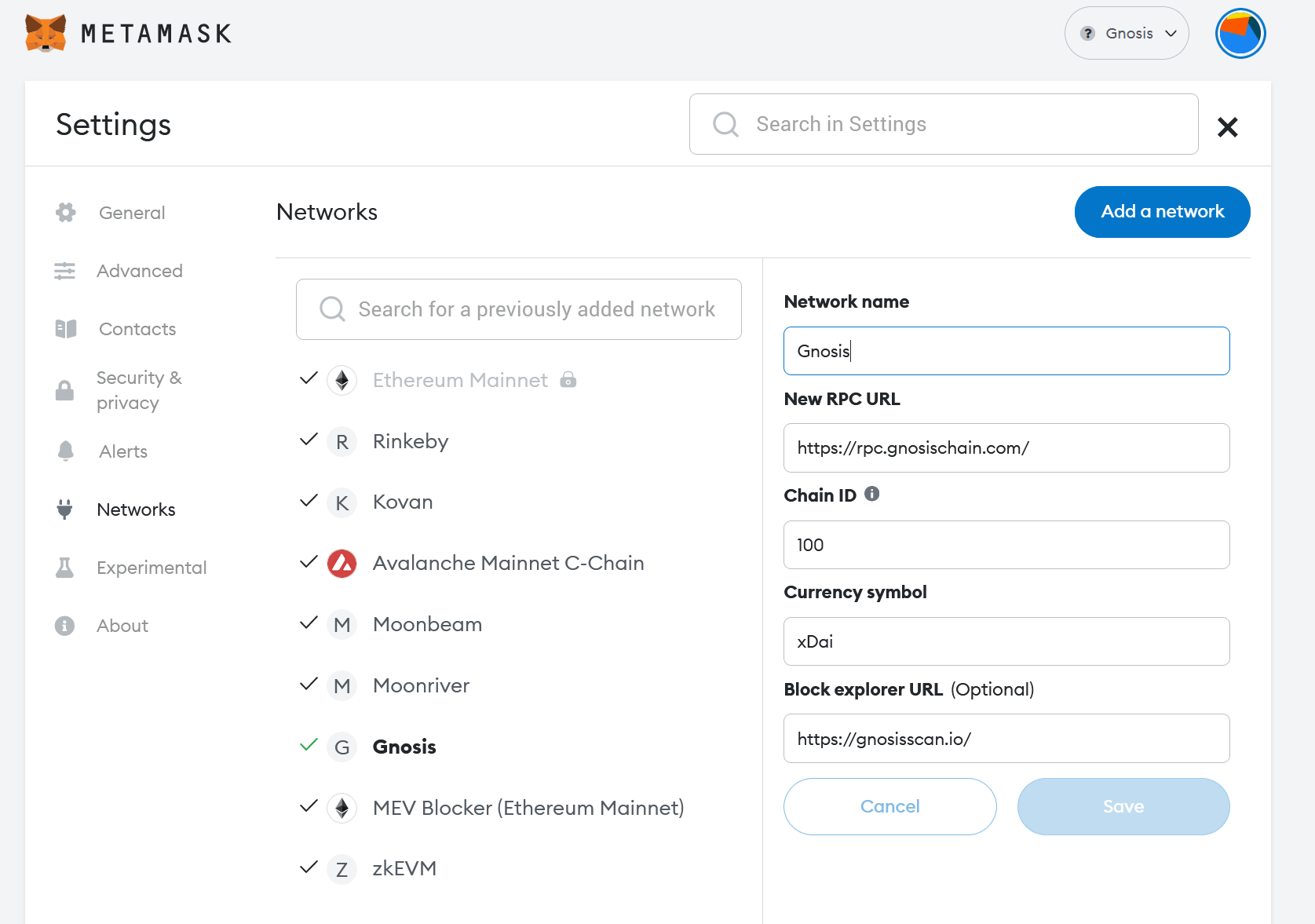 Network name:Gnosis